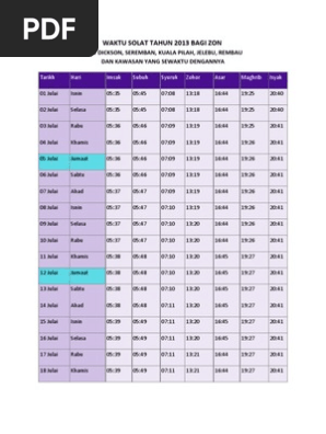 Waktu Solat Tahun 2013 Bagi Seremban Pdf